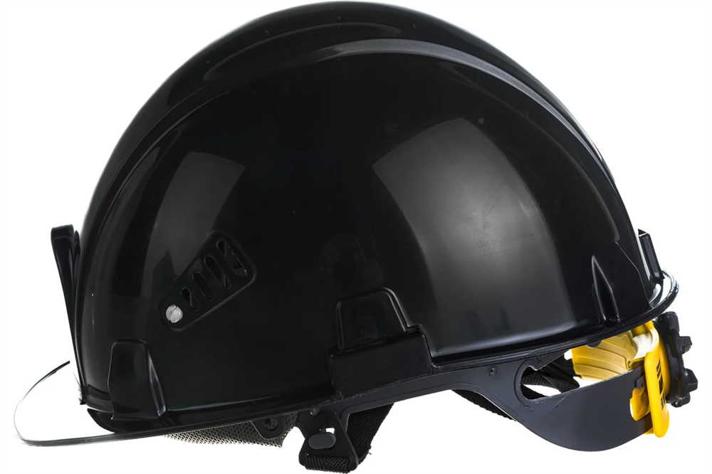 Для совместного ношения с защитными лицевыми щитками и противошумными наушниками предусмотрены пазы в корпусе каски.