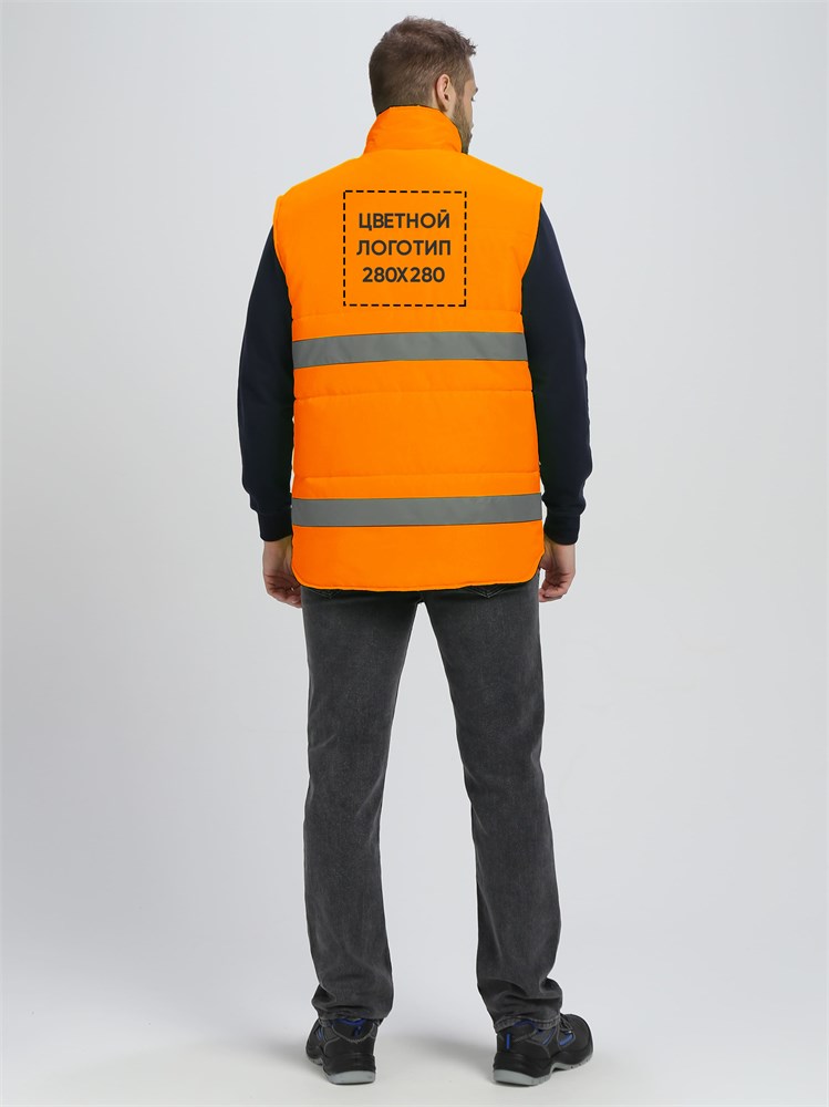 Жилет С НАНЕСЕНИЕМ ЛОГОТИПА утепленный сигнальный Ярксион® СОП (тк.OxLine,90), оранжевый - жилет прямого силуэта с центральной застежкой "молния". Удлиненная спинка, высокий воротник, предусмотрено два боковых кармана.